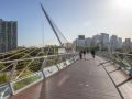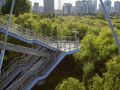 这座横跨首尔金融中心汝矣岛西部自然公园、连接地铁新吉站的人行天桥,名为「赛江文化桥」。它全长324米,是一座斜拉桥,于2011年4月建成。