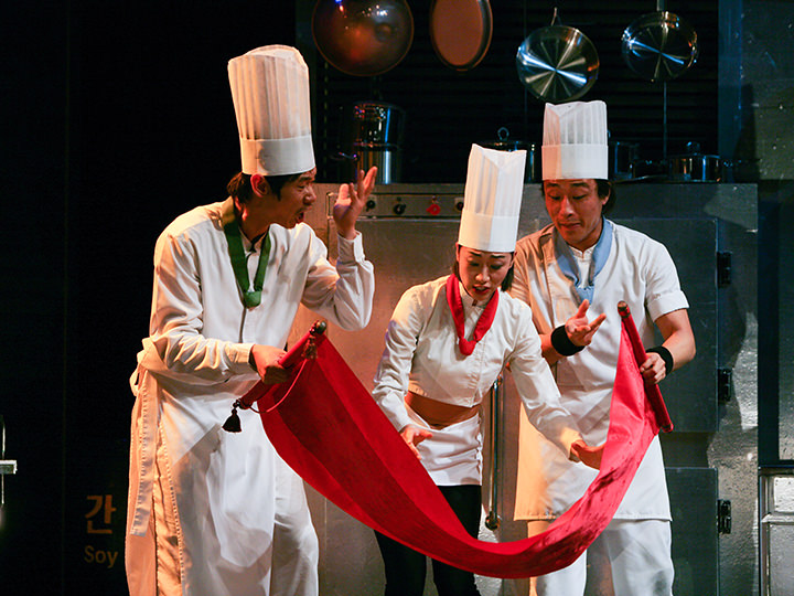 在烹饪表演环节中,他们不是单纯做做样子,而是操起真家伙叮当叮当地炒起菜来。全场弥漫着阵阵菜香,有时还能听到从观众们肚子里发出的咕噜声!?