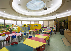 | 耽罗时代的城郭和济州邑城的模型 | 演绎着耽罗开国神话的彩色玻璃顶 |