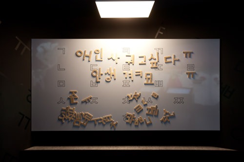 韩文是由横、竖、斜线和○等形状组成,照片中的字符就是集中了点、线、圈的博物馆的标志