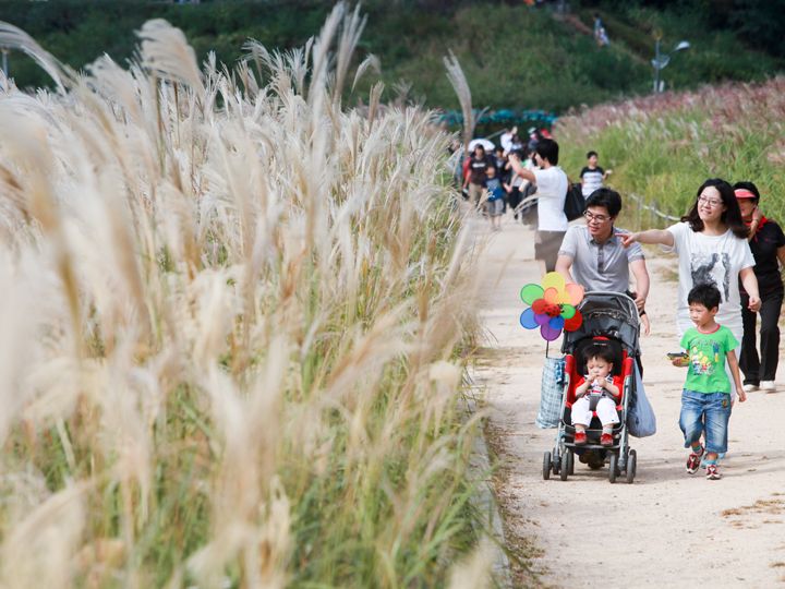 韩国人气秋季庆典,在首尔西部天空公园体验浪漫的紫芒花海
