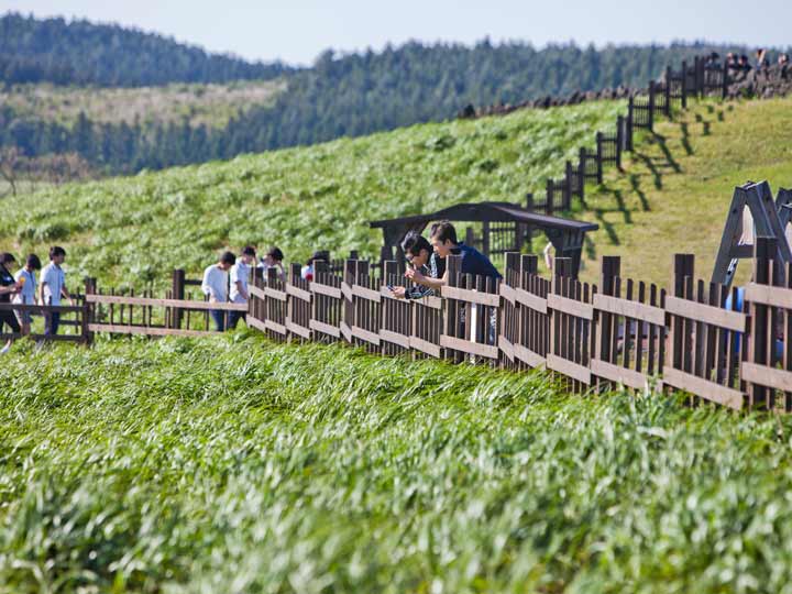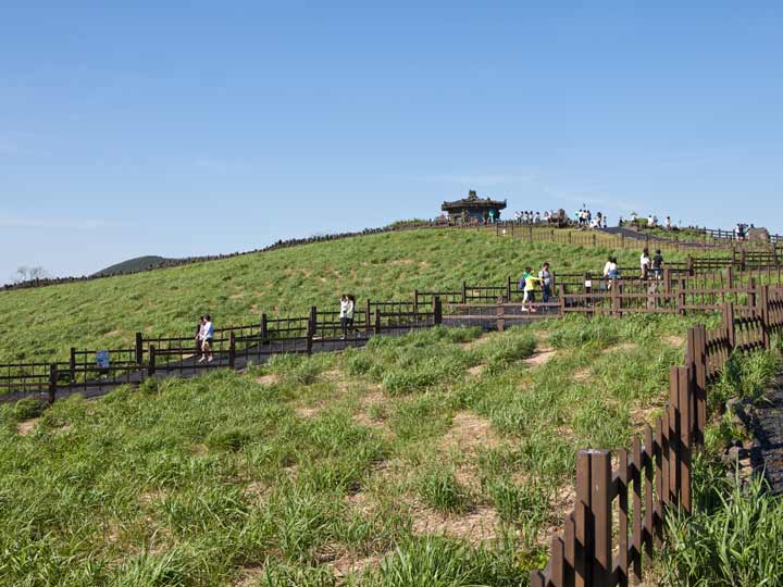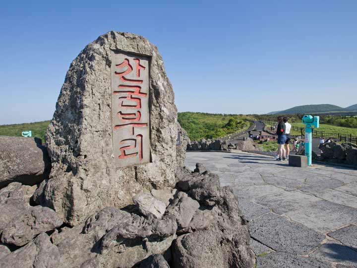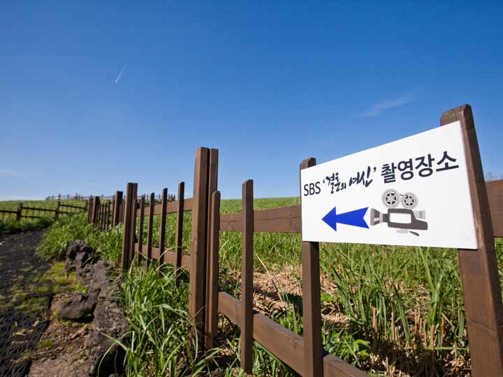 山君不离,多么浪漫的名字!它位于济州岛中部至东部之间,距离济州岛国际机场约46分钟的车程。这里是世界罕见的平地火山口!为地质学研究提供了珍贵的资料,因此被指定为天然纪念物第263号而受到保护!这里还是济州岛著名的自然风景区,大片的紫芒在风吹下掀起一波波绿浪,韩剧风情十足的木头栅栏蜿蜒向上,就像伸入到了清澈的蓝天白云里一般。一切都那么唯美、清新和浪漫,电视剧《结婚的女神》、电影《恋风恋歌》都曾在此取景。在如画的风景中漫步到山顶,还可以远眺汉拿山哦!另外,这里的植被也值得一提,分布这450余种植物。各种设施也齐备哦!