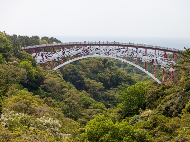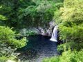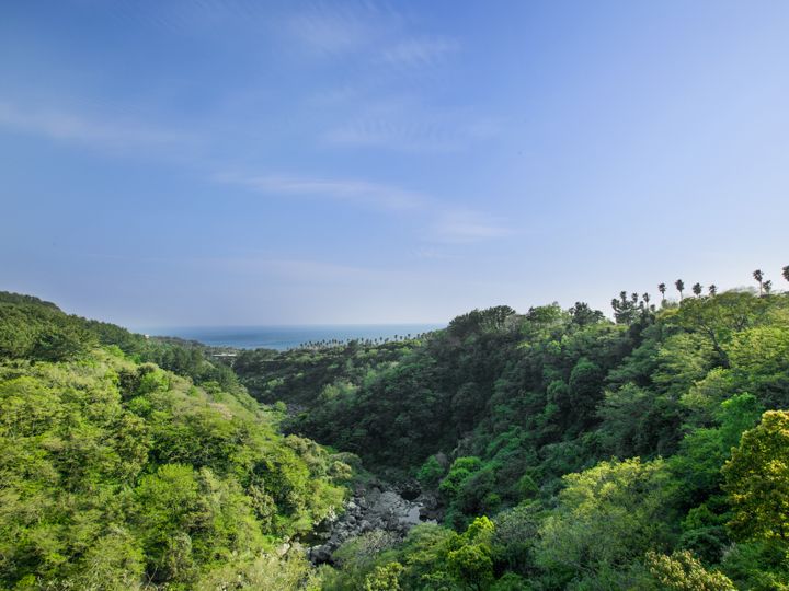 ”天帝渊瀑布“位于济州岛的中文旅游区,与天地渊瀑布、正房瀑布并为济州岛三大瀑布。相传在遥远的以前,伺候玉皇大帝的七位仙女曾在夜间乘着紫色祥云降临于此,在清澈的潭水中沐浴后清新返回天庭,于是给这里增添了“神之池”的色彩。它分为三段瀑布,浩荡壮观的同时不失韩国山水特有的秀丽气质。溪谷里还有雕着七仙女塑像的“仙临桥”及“天帝楼”楼阁。从瀑布到海岸长达2千米的地域里,有100多种亚热带野生植物,欣欣向荣。此外,这里的泉水一年四季清澈透凉,可以直接饮用,传说酷暑时浇上此水还包治百病呢。来济州岛不可错过的景点之一哦!
