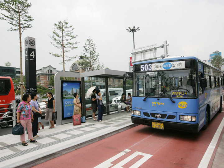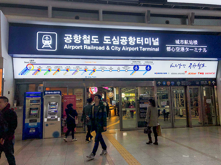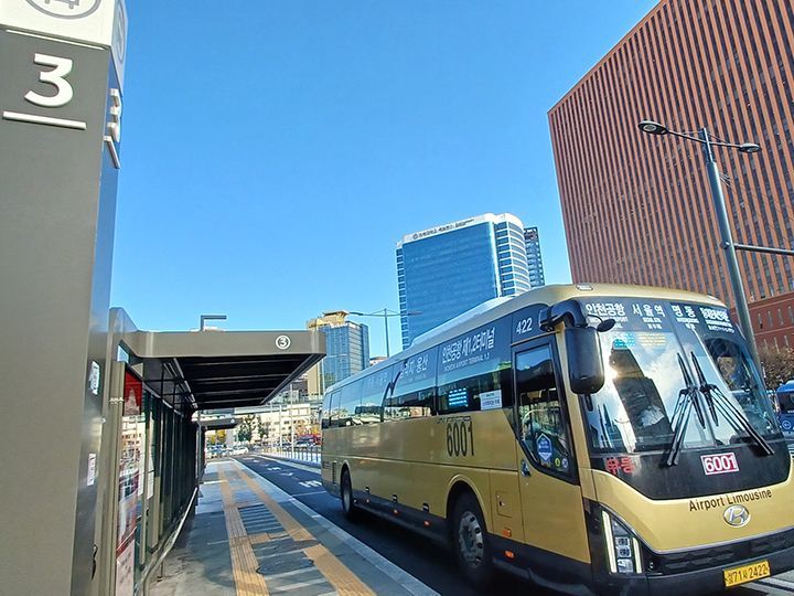 在首尔站前的综合换乘中心,有前往仁川国际机场和金浦国际机场的机场大巴停车站。