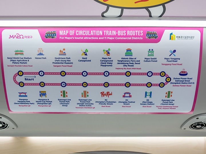 麻浦循环列车巴士路线精心设计,从购物美食到观光赏景,麻浦区的多重魅力一样都不错过!