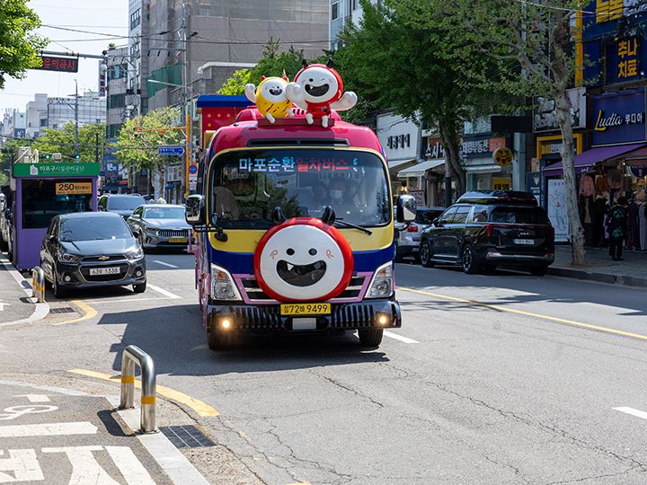 麻浦循环列车巴士上还安排有导游共同搭乘(周一、周二、每天首班、末班车除外),可以用韩语和简单的英语交流。如果对沿途景点有好奇,可以直接向导游提问哦!