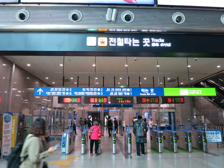 在KORAIL网站和手机APP中提前购买的情况下可持QR码,从自动检票口进入。