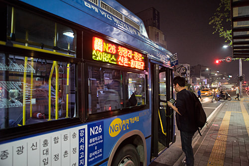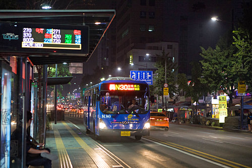深夜穿梭在首尔市内的「猫头鹰巴士」
