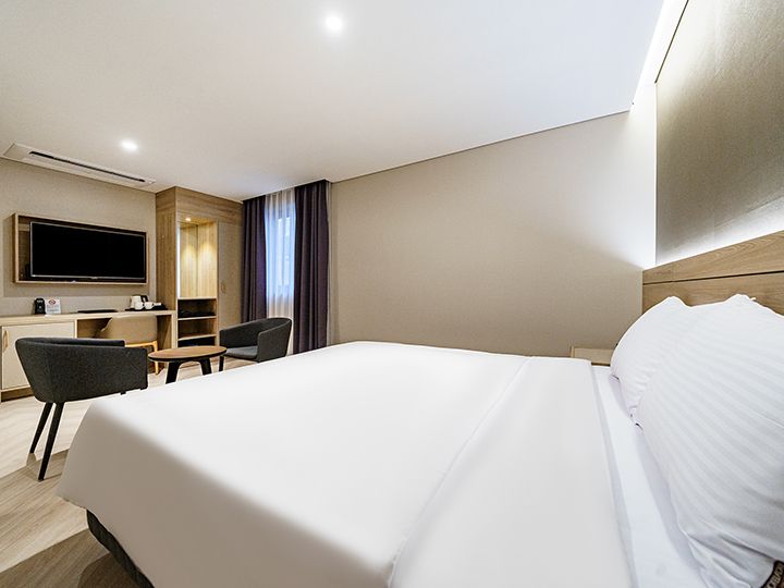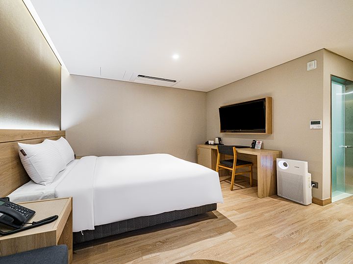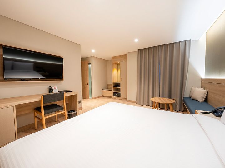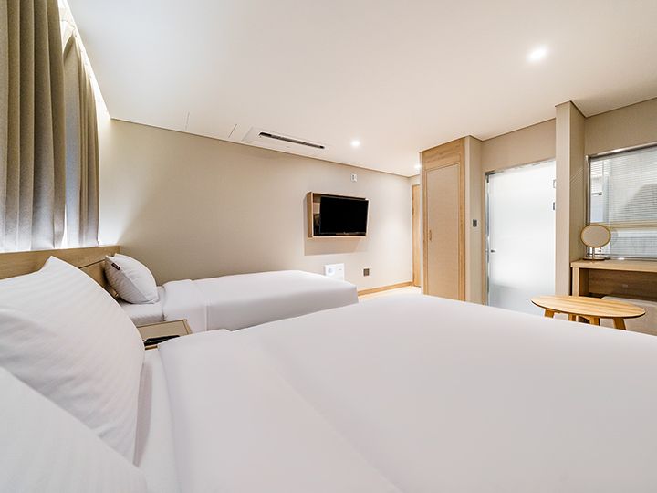 位置不错离地铁很近,不难找,地铁choryang站12号出口直行,第一个路口右拐前行50米即到。房间装修比较新,空间也比较大,房间卫生比较干净,有浴缸,酒店的格局有点像国内的商务酒店,就是装修味道没散尽。入住时间严格控制,这点不是很好,就算空着也不行,否则加钱,但可以寄存行李。