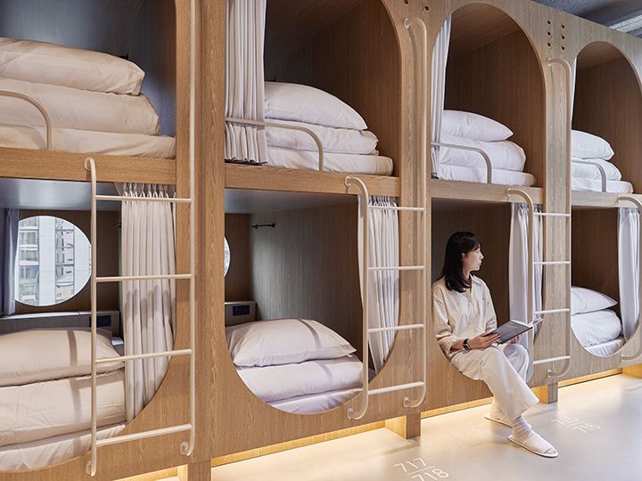 DRIP&DROP酒店设施齐全,装修简洁,提供胶囊房。虽然空间紧凑,却整洁温馨,柔和的舱内灯光与舒适的床垫,让人卸下疲惫,一夜好眠。如果对居住空间要求不高,只想找一个实惠舒适的过夜去处,DRIP&DROP酒店的胶囊房是不错的选择哦!