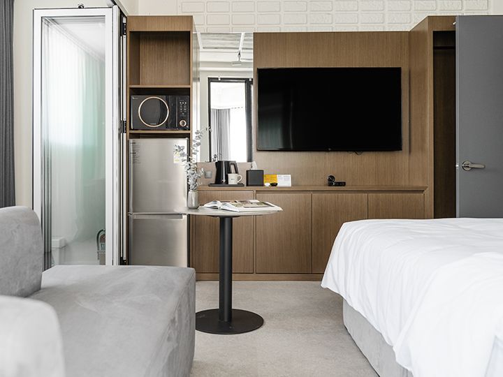 客房内部宽敞舒适、设施完善,无论是短期投宿或长期旅居皆可满足。
