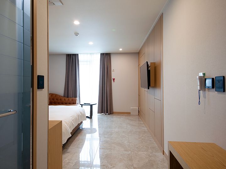 酒店客房以白色与木板色搭配装饰,给人一种温馨的家的感觉。客房内配有浴缸、智能坐便器,高速免费Wi-Fi,方便舒适,是旅行时的最好休息之所!