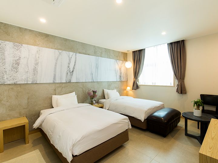 第一次找位置有点偏,从乙支路3街4号口走比较方便,穿过一个桥,看到一个酒店,里面的巷子就是。步行去明洞和仁寺洞都很方便,附近还有清溪川,是闹中取静的地方。房间挺好的,干净整洁,设施都很新,不输四星级酒店。