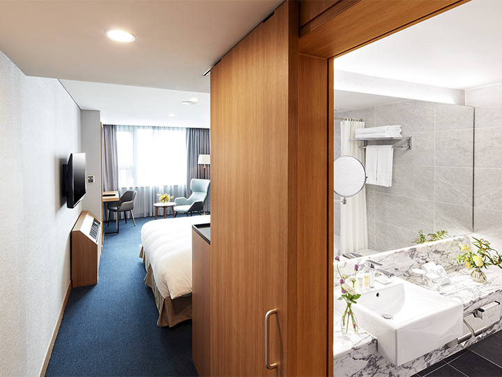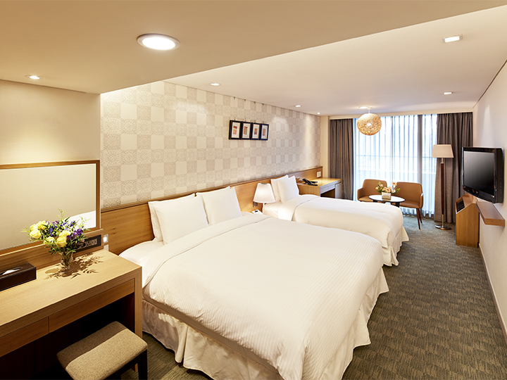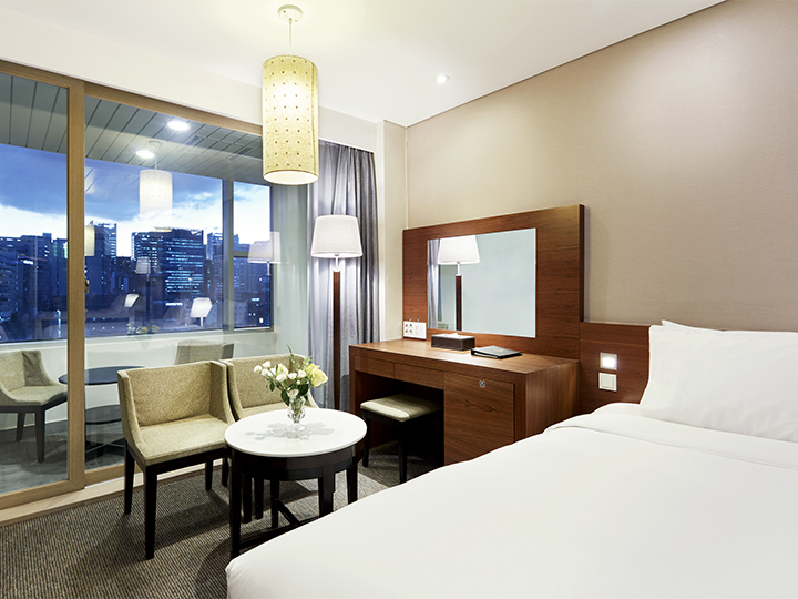 2010年9月装修工程结束,酒店焕然一新,变得更加时尚现代。客房干净整洁,所有客房均配有浴缸,可以洗去您一天的疲劳。此外,客房内还设有智能座便器、保险柜,可以收看有线电视的液晶电视等设施。从2010年开始,酒店还专门设置了女士专用房,既安全又方便,颇受广大女性游客的青睐。请在快捷舒适、时尚新颖的“首尔PJ酒店明洞”度过美好的首尔之旅吧。