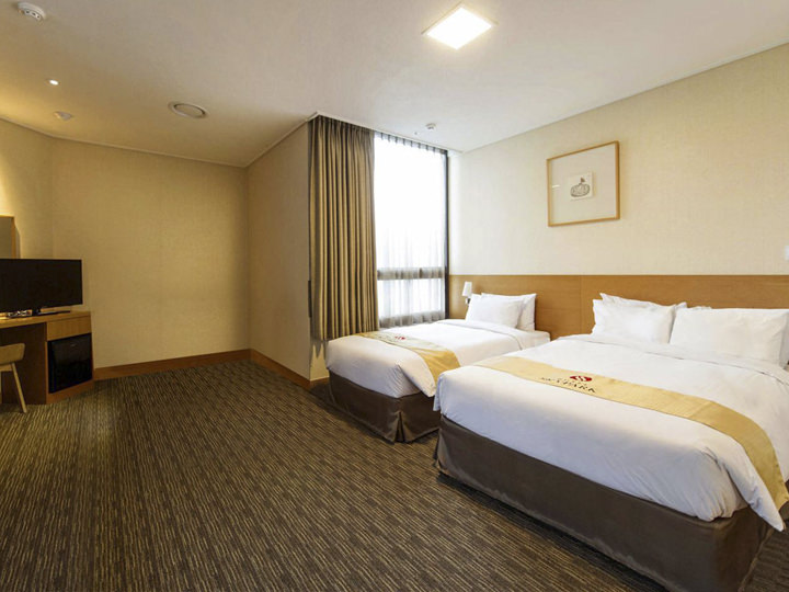 “明洞天空花园中心酒店”共有15层312个客室。客房设计无不流露出尊贵、豪华之感。所有客房都装有浴缸,可以自由地连接Wi-Fi上网。另外,酒店每层都设有化妆角,还可免费擦五颜六色的指甲油,深受女性顾客的喜爱。下榻地理位置优越、服务周到的“明洞天空花园中心酒店”,体验美好的韩国住宿生活吧。