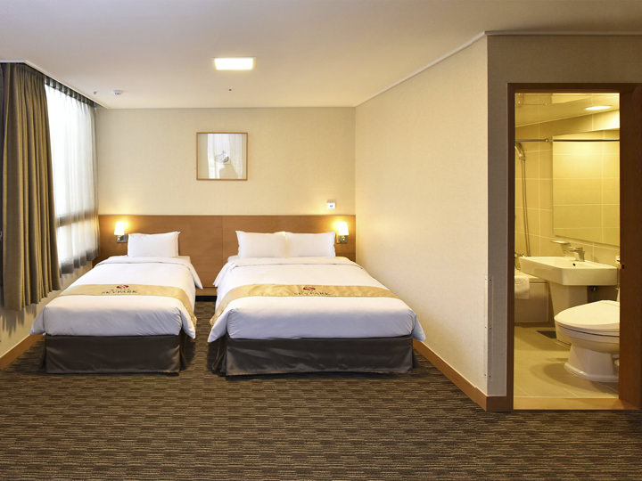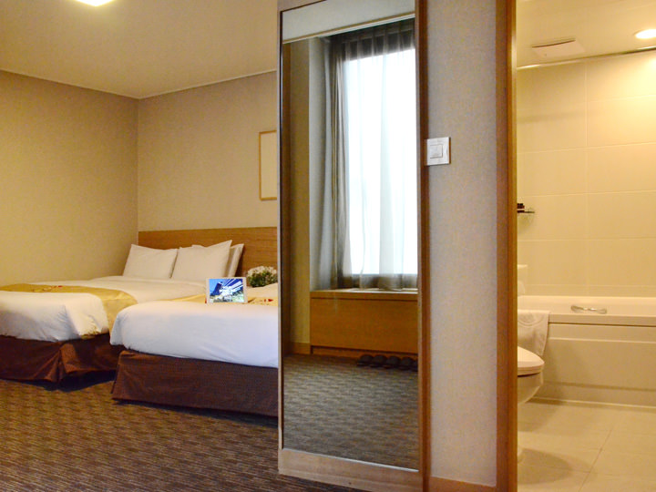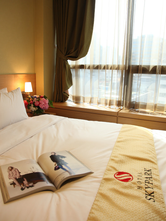 位置挺好的,在明洞入口上,离6015机场大巴首尔皇家酒店站很近,离2号线乙支路入口和3号线的乙支路三街也不远,可以坐中巴去首尔站,新罗免税店,东大门。我们是最后一天才发现可以坐中巴的,真是很郁闷。逛街很方便,楼下就有家悦诗风吟,王妃家(没去吃),本粥,也有换钱4-5家的地方(价格还行),和天空2号店挨着。我们是先找到了2号店才找到了中心店。大堂和酒店外观还可以,这次给我们安排的公主大床房(1.5床)实在是太小了,我们对面的双标房比大床房大很多。房间很干净,卫生间都有空调,没有任何异味,房间空调足的发冷,晚上都要把温度调到最高。服务人员会讲中文的少,态度很好,个别懂简单的中文,简单的英文沟通基本能沟通,牙膏牙刷第一天要在前台领取,过后可以让清洁人员补充,房间里已有一个国内可以用的插头,但在妆台上,大点的三插头用不了(插座装得太低了,紧挨着妆台)。最好还是在前台再租1个比较好。