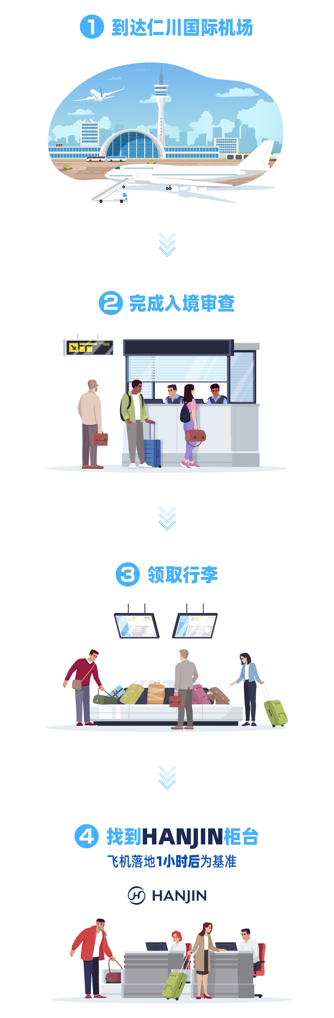 找到韩进HANJIN柜台,出示「预订确认书」,寄放行李