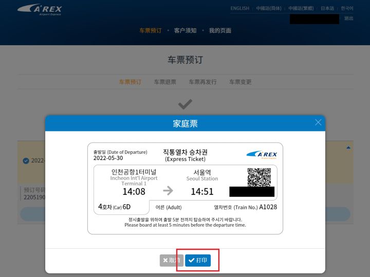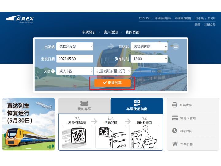 ▪ 在韓巢預訂AREX直達車票後,可提前在韓巢網兌換成二維碼車票,乘車時在檢票口使用QR CODE車票即可,更加方便快捷!