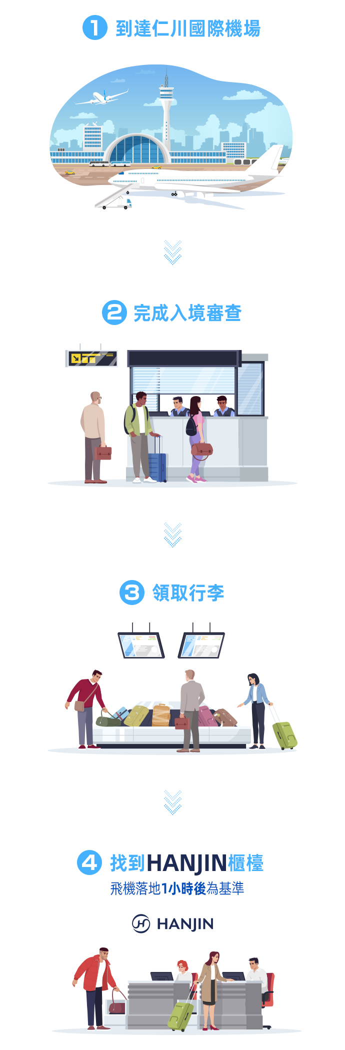 ▪ 行李運送由韓國物流業NO.1的「HANJIN(韓進)」提供,安全有保障,讓您的韓國之行更加方便舒心。